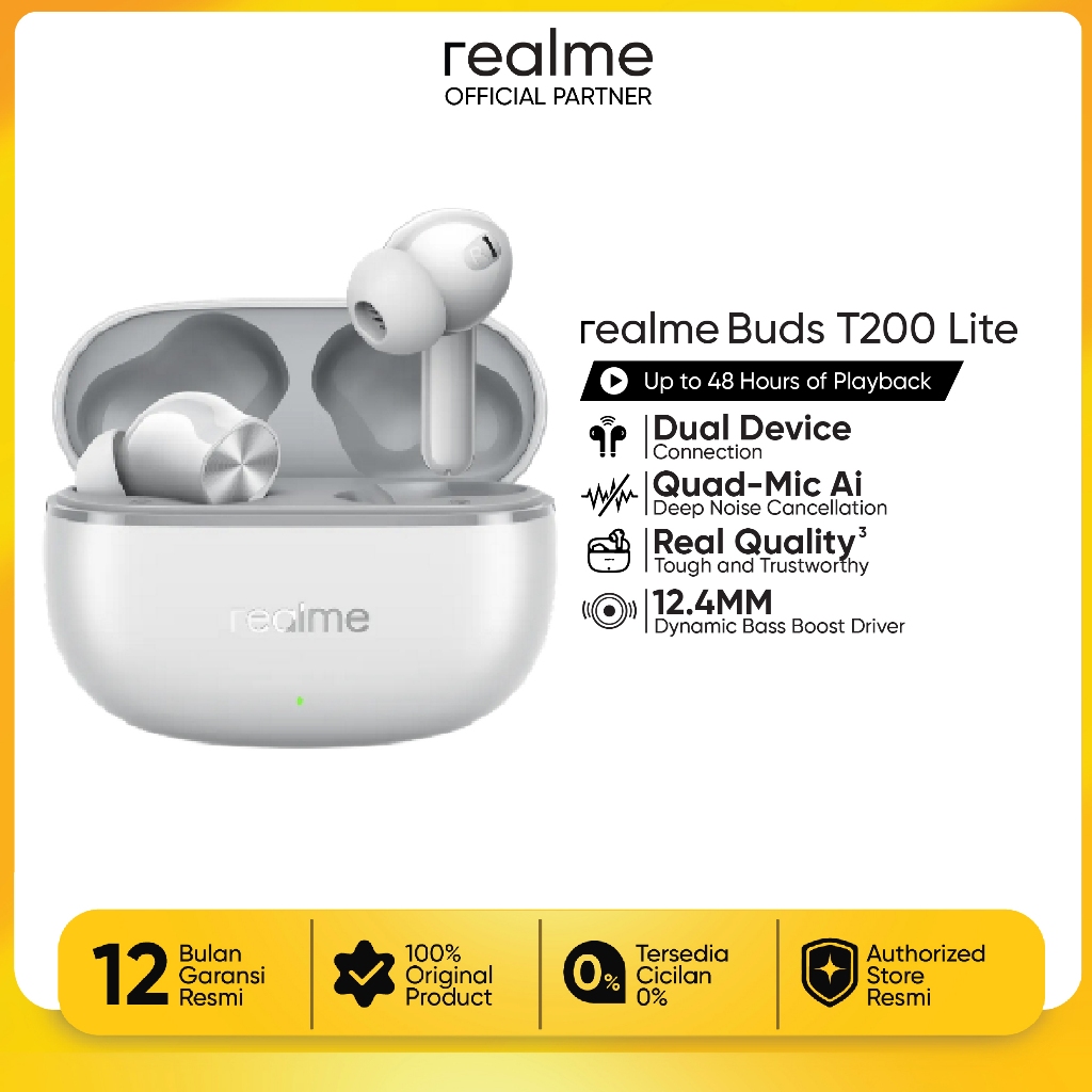 realme Buds T200 Lite ( Up to 48 Hours of playback | 12.4mm Dynamic Bass | Quad-mic Al Deep Call Noise Cancellation)