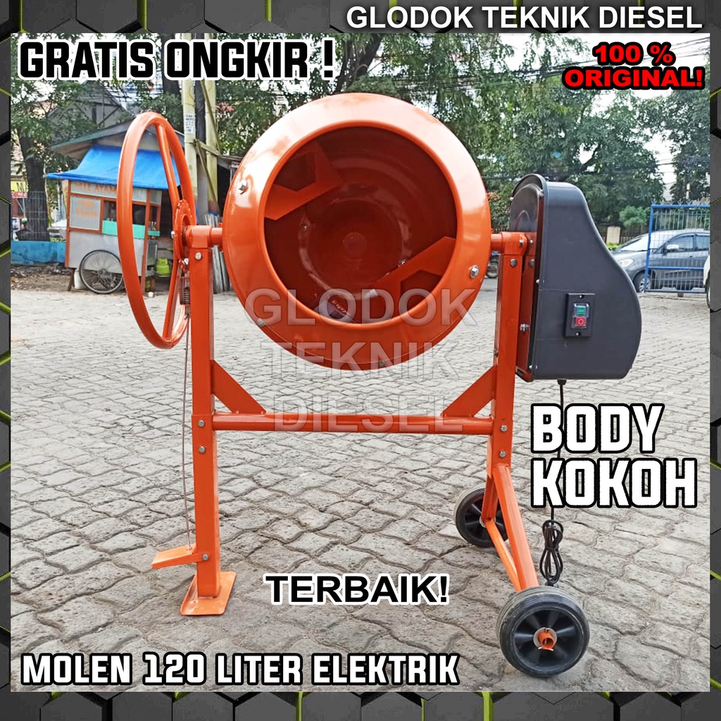 MESIN PENGADUK SEMEN MOLEN LISTRIK CONCRETE MIXER 120 LITER ALAT ADUK TERBAIK