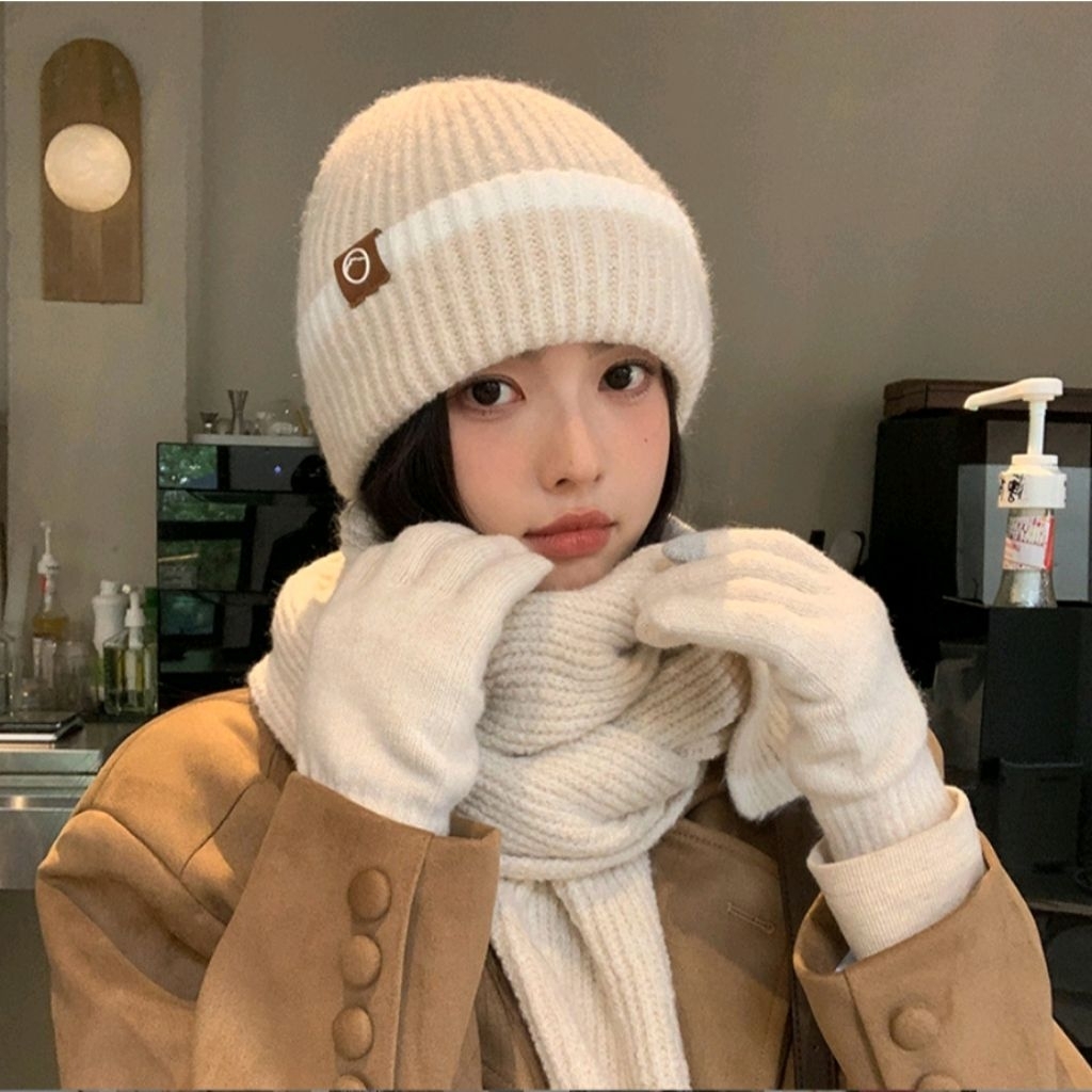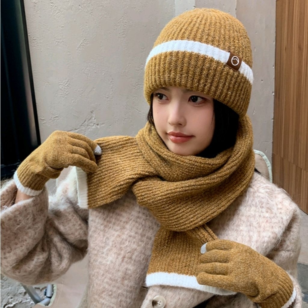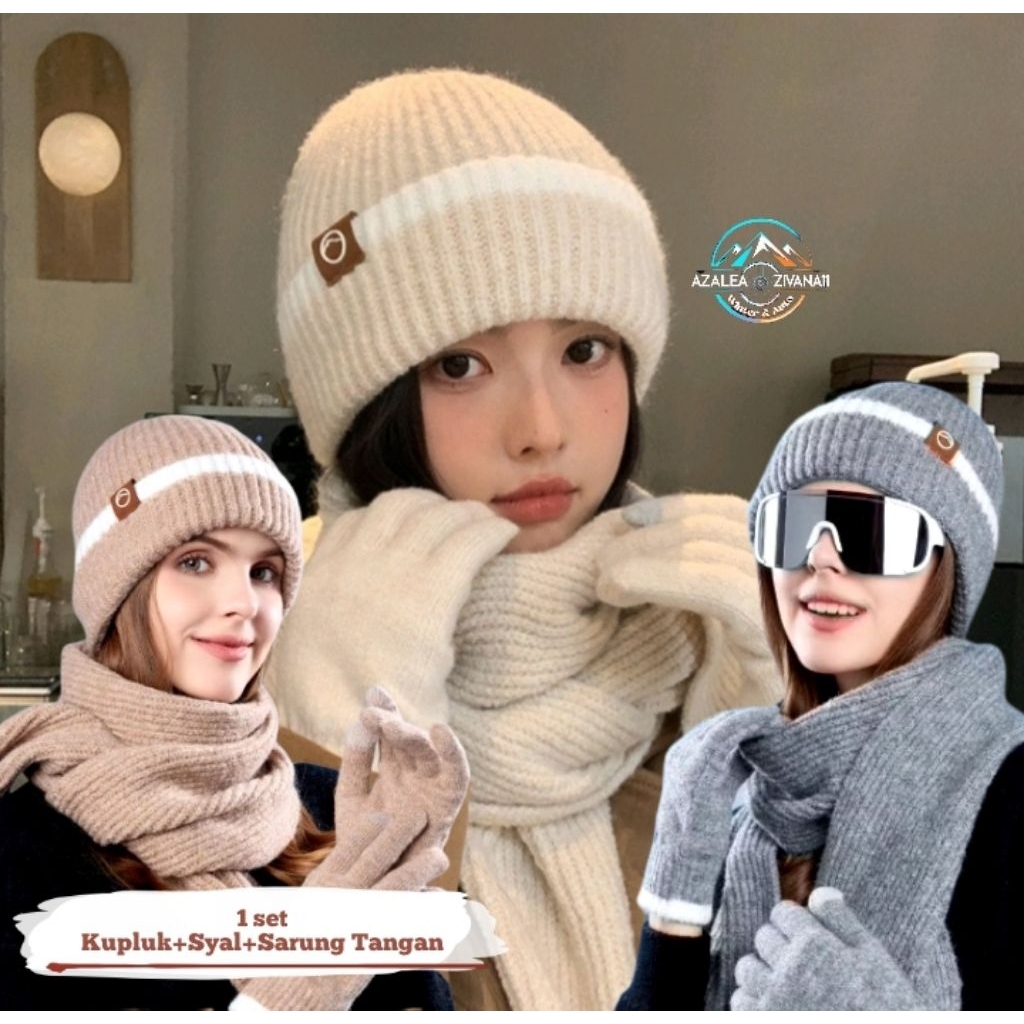 Topi Kupluk 1 Set Bundle 3 Item Topi Kupluk + Syal + Sarung Tangan Winter UntukMusim Dingin