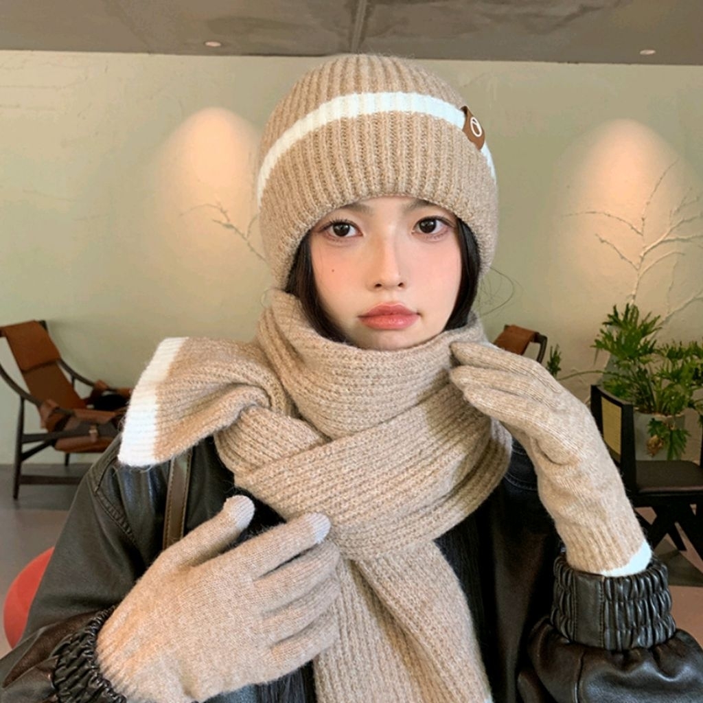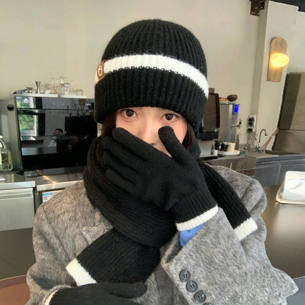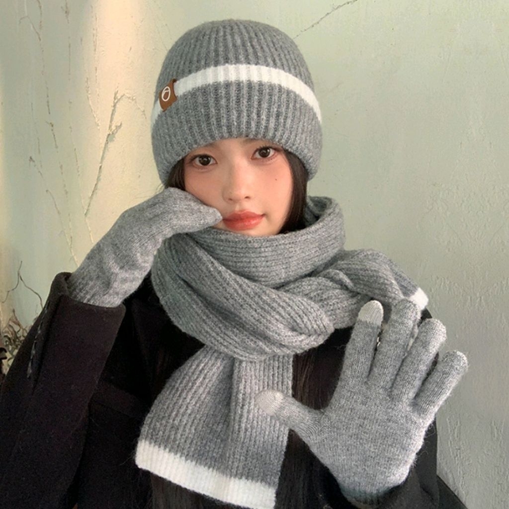 Topi Kupluk 1 Set Bundle 3 Item Topi Kupluk + Syal + Sarung Tangan Winter UntukMusim Dingin