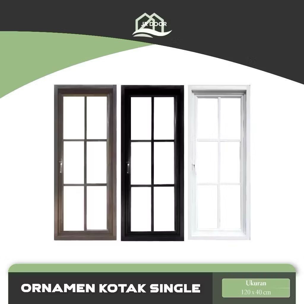 JRDOOR - (120X40CM ORNAMEN KOTAK SINGLE) SET JENDELA ALUMINIUM MODERN LENGKAP TINGGAL PASANG JUNGKIT SLIDING SWING BISA