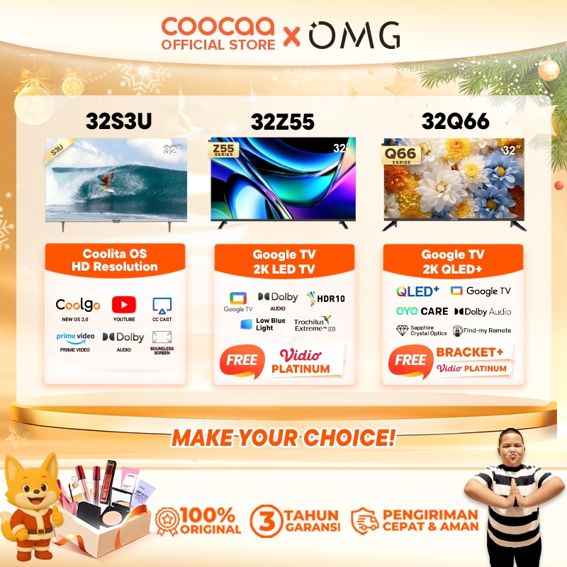 COOCAA 32 Inch Smart TV Digital 32S3U DVB T2 - Coolita OS, YouTube, Dolby Audio, WiFi & Mirroring