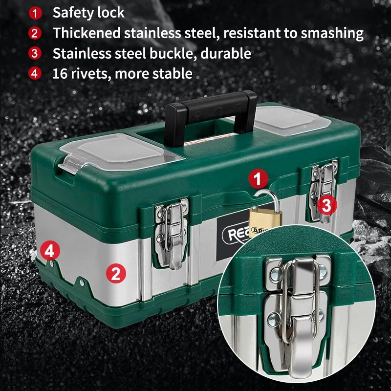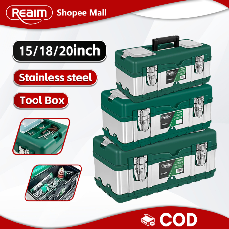 REAIM Tool Box 15-21 inch Stainless Steel Toolbox/2 layaer Toolkit Box BoxAlat Perkakas/kotak alat plastik