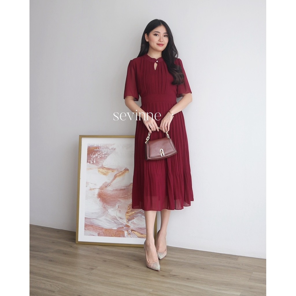 Sevinneclothing - ELEANOR Dress - Dress Natal - Baju Natal - Dress Korea - Midi Dress - Dress Bumil - Dress Plisket - Dr