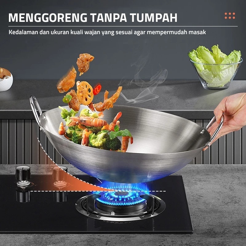 CEO Wajan Stainless Steel Anti Lengket Penggorengan Tebal Kuali Premium Katel Dengan Pegangan