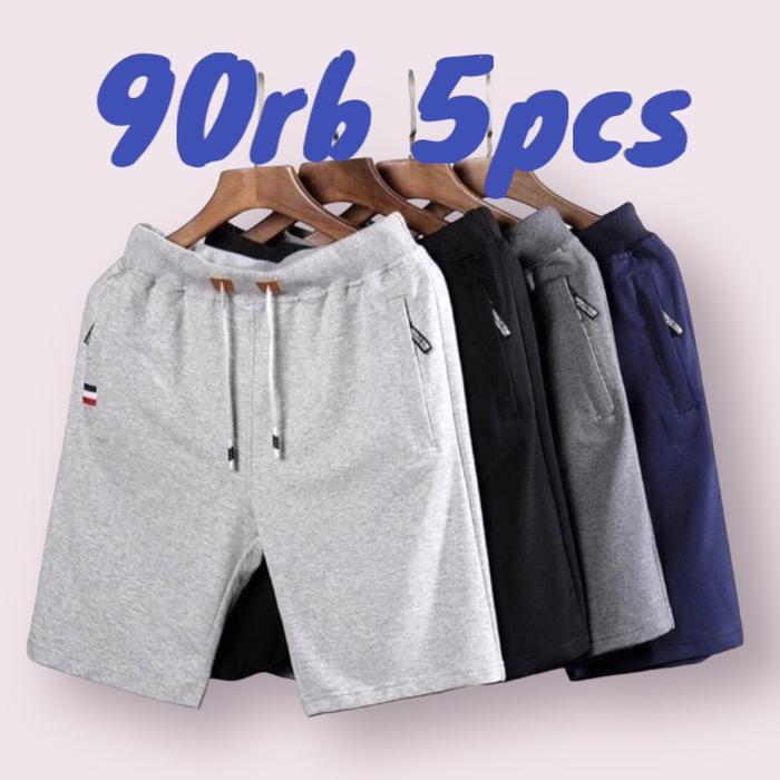 Paket 5 Pcs Celana Bebyteri Pendek Resleting Ziper Pria Wanita Jumbo Santai Keren Shorts Sport Kantong Karet Nyaman Abu