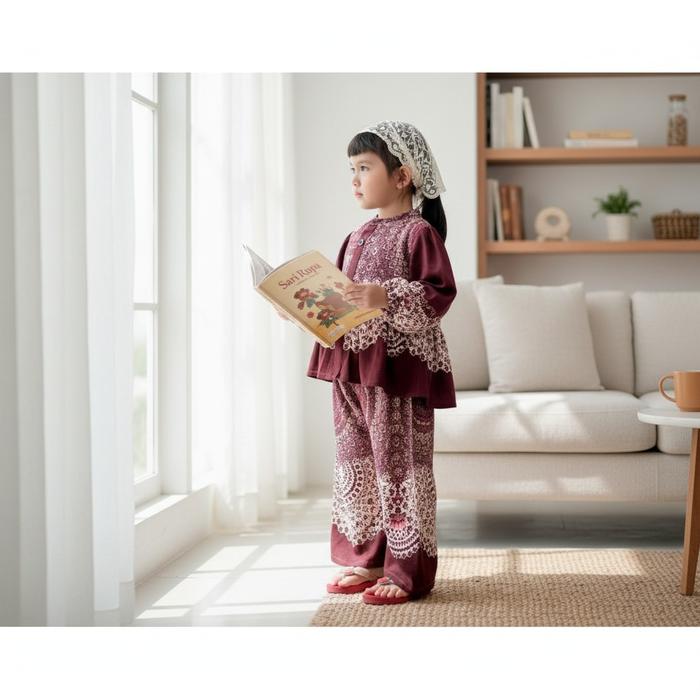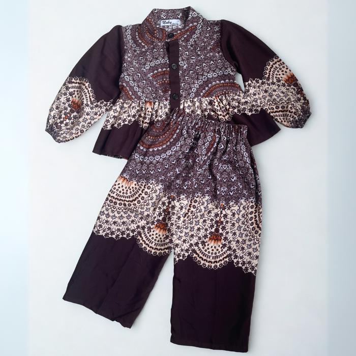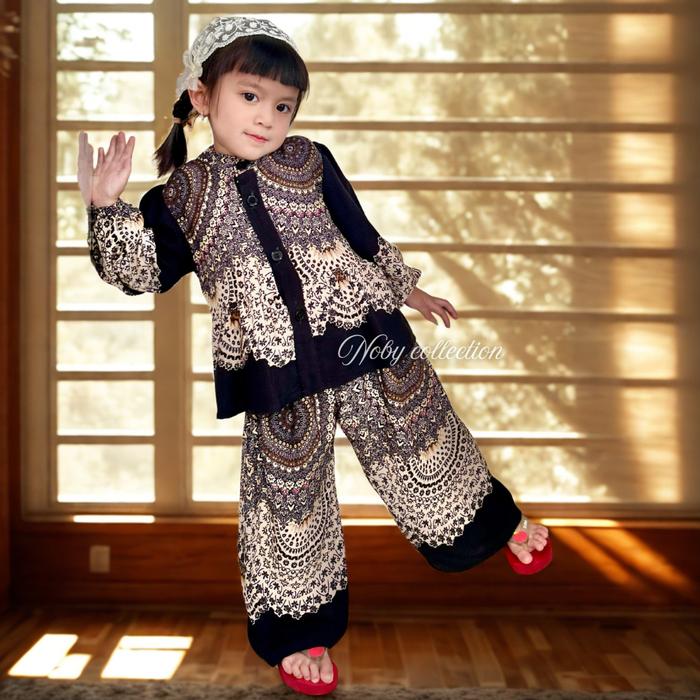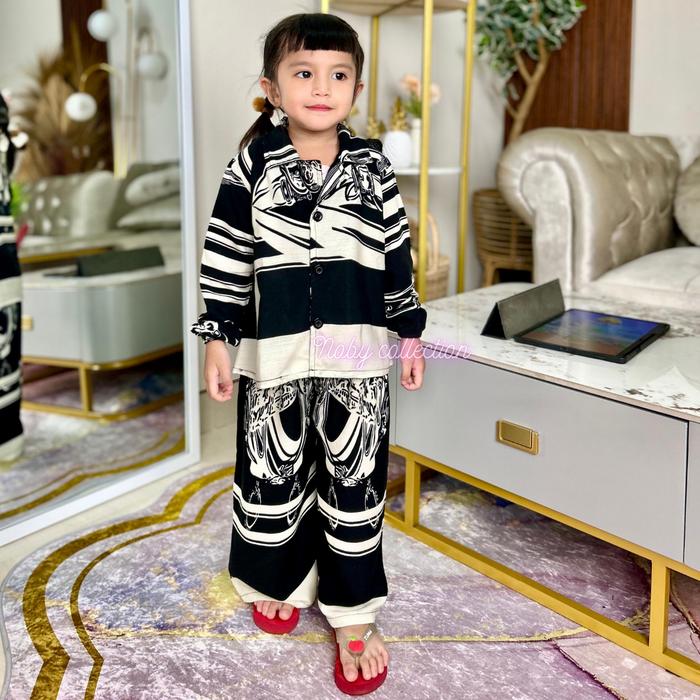 Noby Collection-Setelan Celana Kemeja Rayon Viscose Anak Perempuan Viral 2025 Motif Baju Fashion 1 Set Outfit Anak Kece