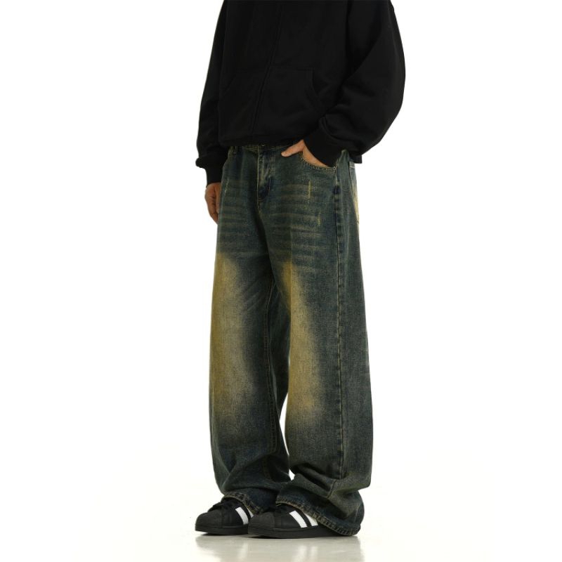 Celana Jeans Pria Wide Leg Black Wisker Model Lebar Loose Fit Nyaman Harian
