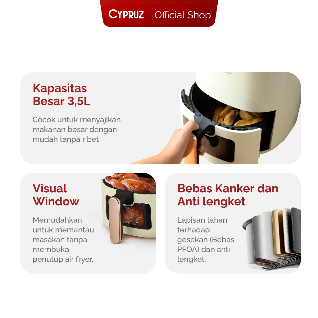 CYPRUZ WINDOW AIR FRYER DIGITAL 3,5 LITER AIR FRYER LOW WATT AIR FRYER PHILIPS AIR FRYER MITO AIR FRYER SAMONO