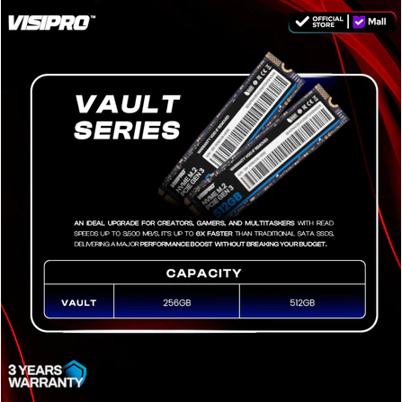 SSD M.2 NVMe GEN 3 VISIPRO VAULT SERIES 256GB/512GB (GARANSI RESMI 3 TAHUN)