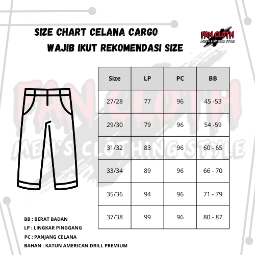 ( ) CELANA CARGO PANJANG PREMIUM | SIZE 27-38 | CELANA CARGO PRIA & WANITA | BAHAN KATUN