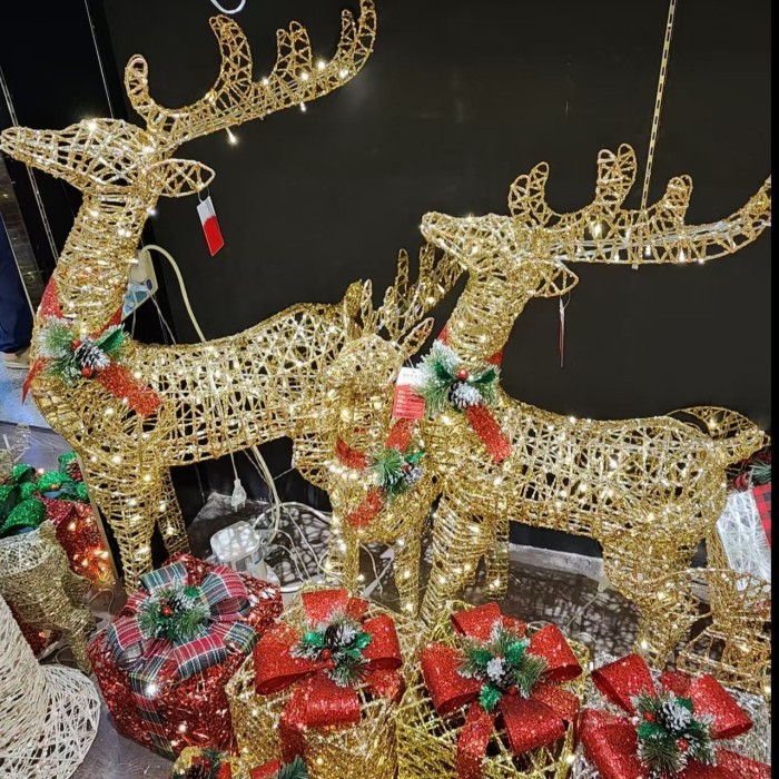 Rusa Lampu Kereta Santa Dekorasi Outdoor Natal Kereta Santa Lampu Gliter Dekorasi Kado Natal Premium