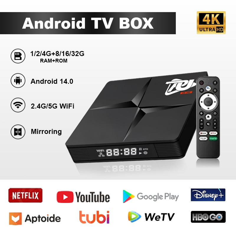 Android Tv Box STB 4K Smart TV Box Android 14.0os 2.4G/5G WIFI 1/2/4GB Ram 8/16/32GB Rom Bluetooth Smart Tv Box Unlock T