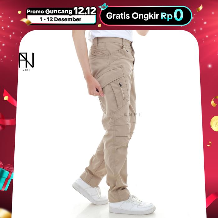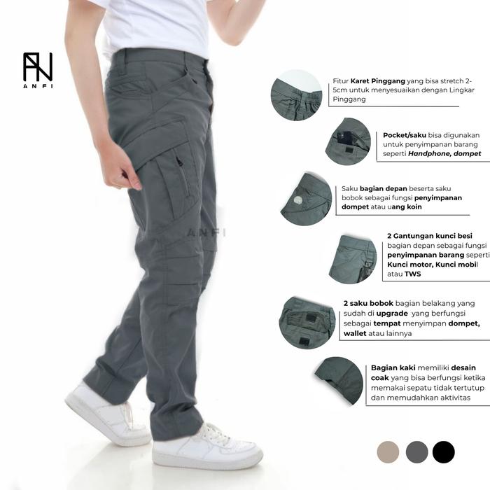 Anfi Long Pants Pria Cargo Arvind Kain Cotton Ripstop 28-40 Celana Cargo Panjang Pria Celana Tactical Outdoor - Hitam, 2