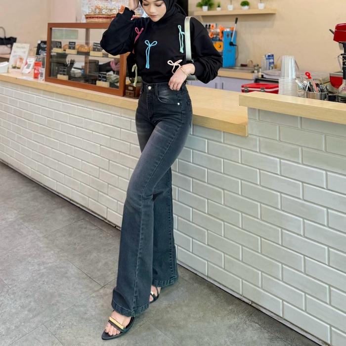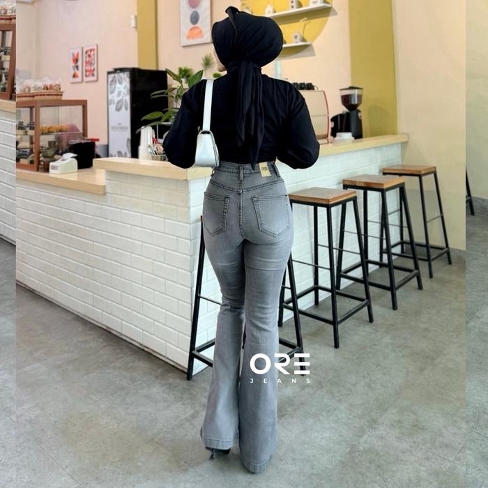 Ore - Cz 930 Size 27-34 - Highwaist Strecht Cutbray Jeans Vintage Black Washed Slim-Fitting Celana Kaki - Black Washed,