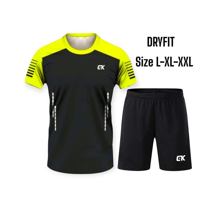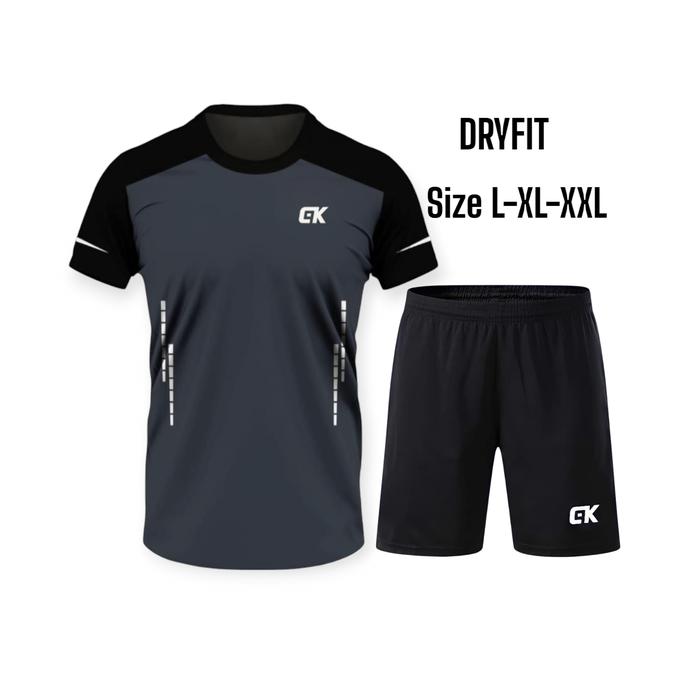 SETELAN KAOS OLAHRAGA GYM IMPORT BAJU JOGGING SENAM TENIS BADMINTON DLL UNISEX PRIA & WANITA DEWASA SIZE L-XL-XXL - BAJU SAJA ABU HITAM CK, L