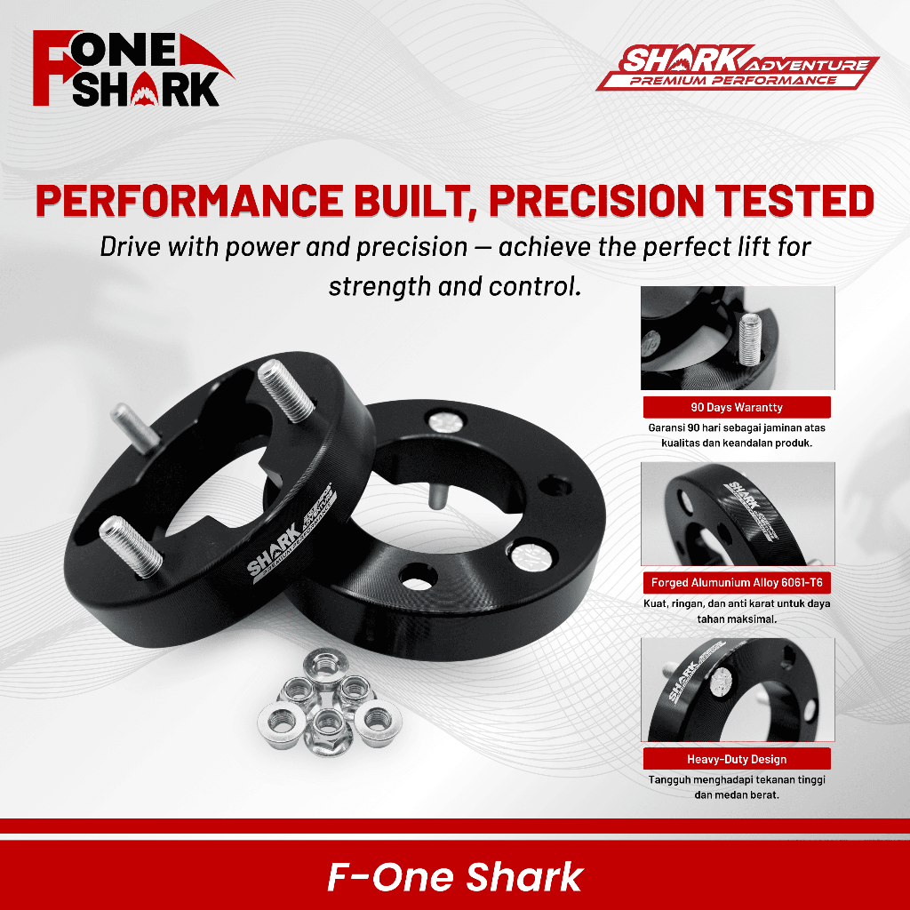 F-One Shark FOS Suspension Lift Kit Spacer Peninggi Depan Toyota Fortuner VNT VRZ SRZ GR 2.8 | Heavy Duty Aluminium 6061