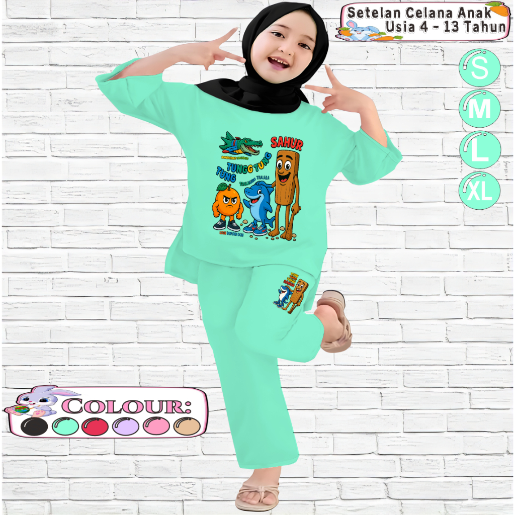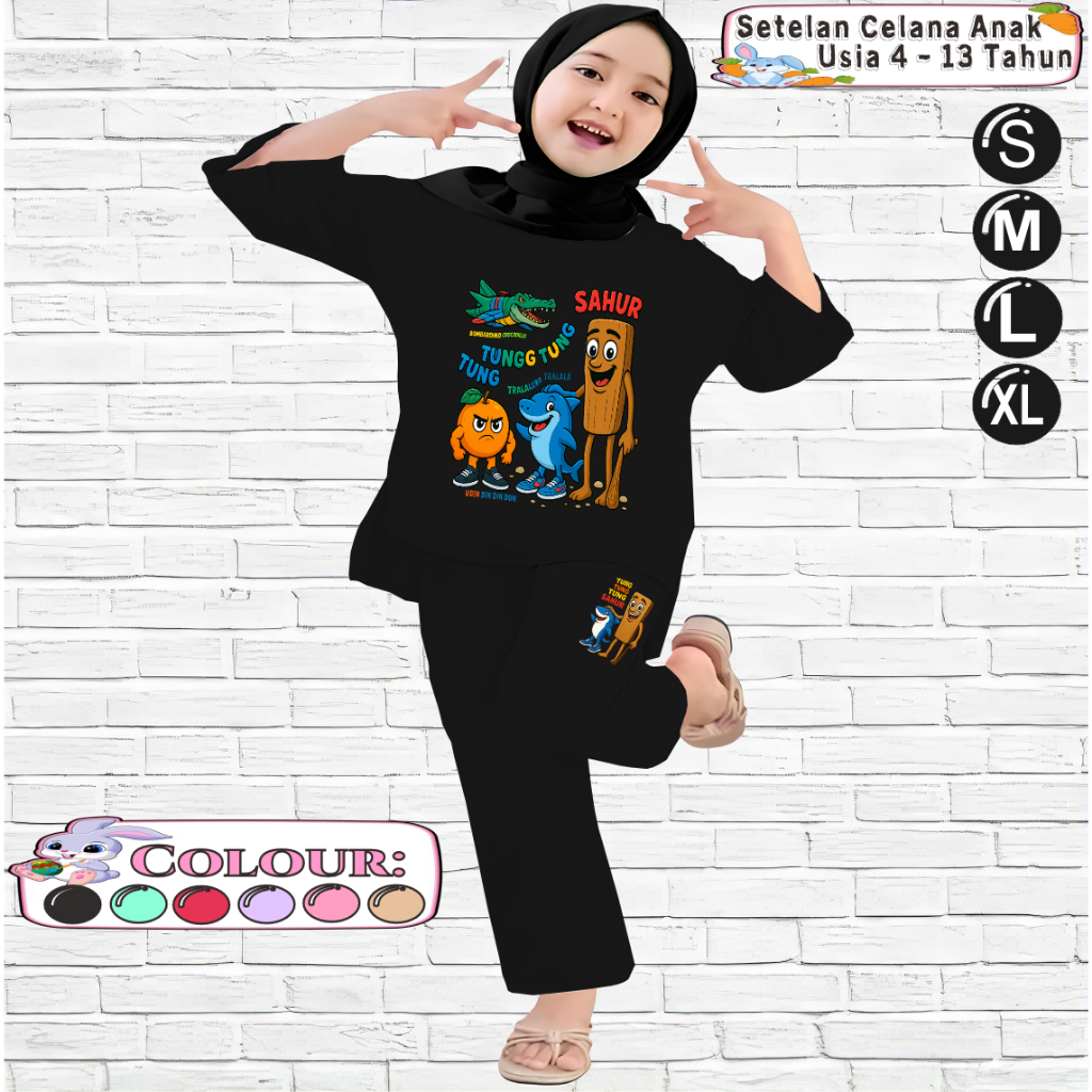 Setelan Kaos Anak Perempuan 4-13 tahun Motif Belah ANOMALI GATHERING TUNG TUNG SAHUR