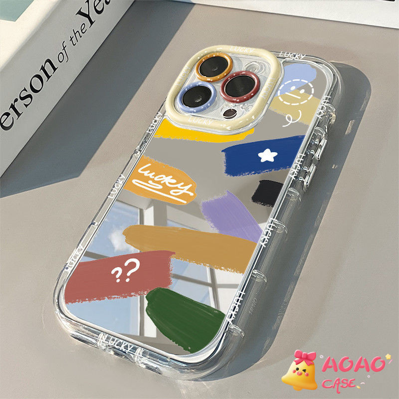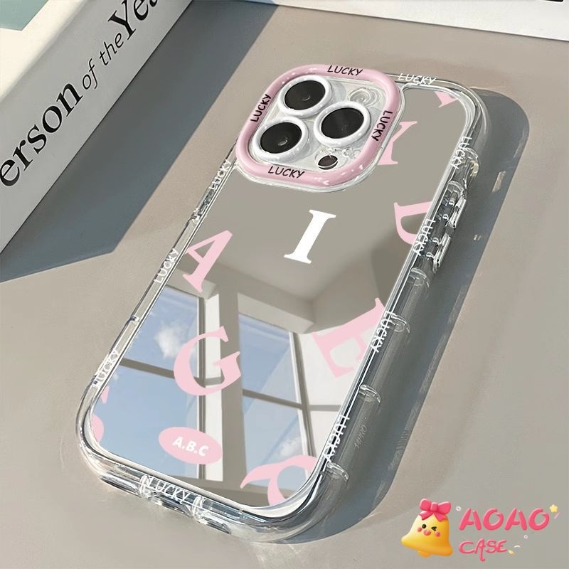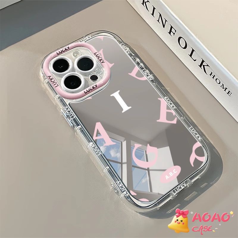 Case HP Untuk IPhone 11 15 13 Pro Max 7Plus 8Plus XR 13 6 7 8 15 14 Plus 14 12 Pro Max X XS Max 13PRO 14PRO 12PRO 15PRO Kreatif Fashion Segar Huruf Bahasa Inggris Beruntung Make Up Mirror Soft Cover