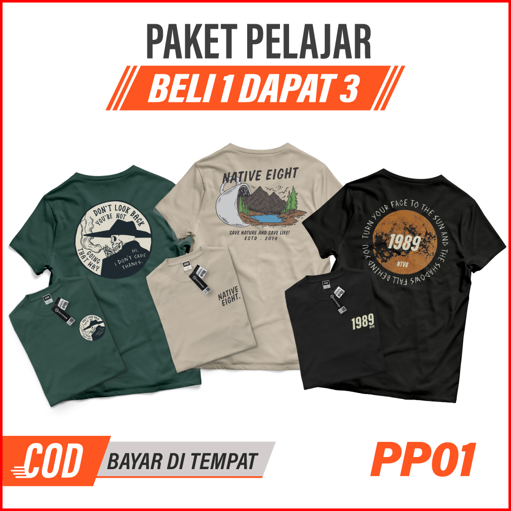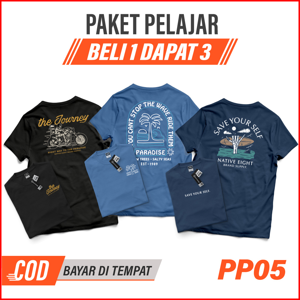 Paket 3 Baju Kaos Pria Kaos Distro Pria Premium Native8