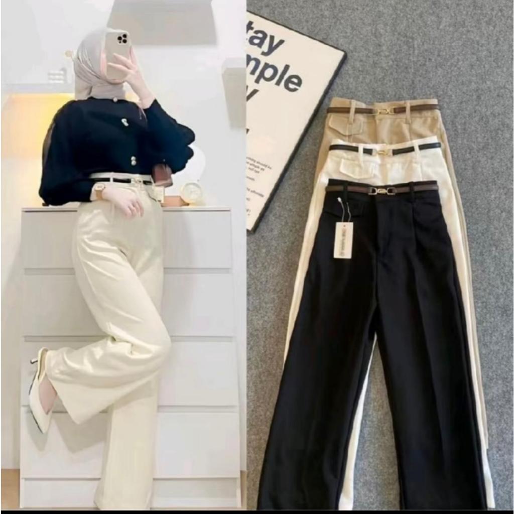 Oro Highwaist Loose Knit Pants - Korean Style with Rapih Stitching Anti kusut