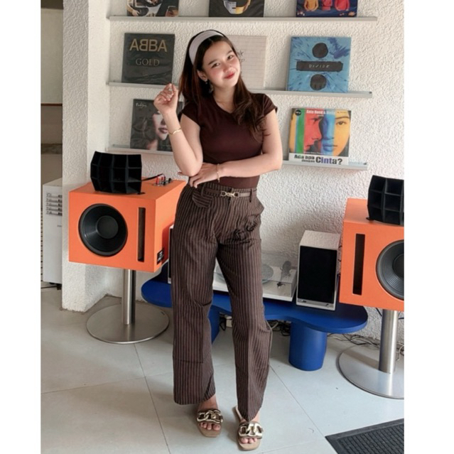 Oro Pants Stripe Bangkok Kekinian - Celana Wanita Murah Anti Kusut - Celana Panjang Wanita Highwaist Korean Style