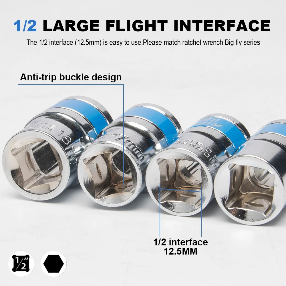REAIM Kunci Shock Wrench 1/2" Set 24PCS Set Wrench Kunci Sock Shock Untuk Peralatan Reparasi Mobil