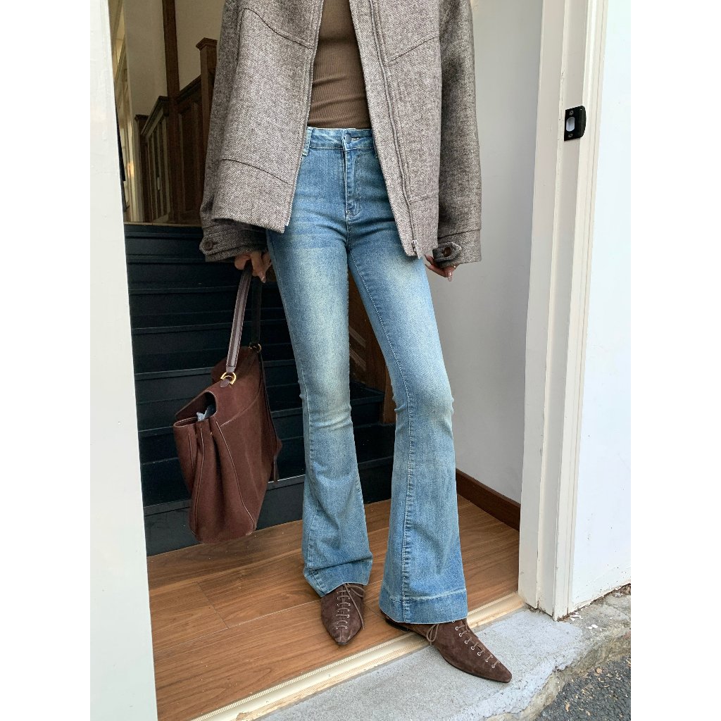 Lassie Alpha J79 ready stok Jeans Wanita Model Cutbray Highwaist Color Blue Retro Stretchy Material
