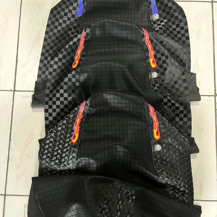 Kulit Jok/Sarung Jok Karbon 3D X 4D Model Jaitan Samping Motif Api Beat Dance Vario Scopy Dll Termurah Terlaris Motor