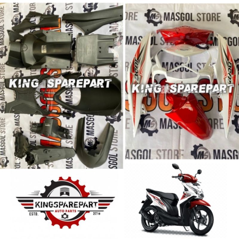 PROMO! Cover body full halus kasar honda beat fi 2013-2016 putih merah plus striping - fullbody halus kasar beat fi puti