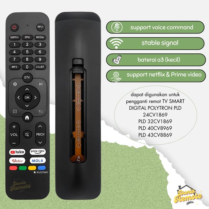 REMOTE TV PENGGANTI POLYTRON Smart Digital IR Non Voice 81j237 81J237M01 TV PLD 32CV1869 tanpa setting