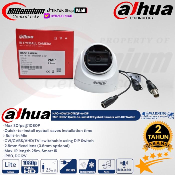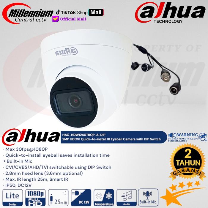 Dahua Kamera Dome Eyeball 2MP+AUDIO HDCVI IR DH-HAC-HDW1240TRQP-A-DIP Lensa 2.8mm & Garansi 2 Tahun