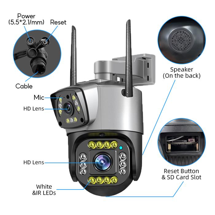 Paket V380 V10 (CCTV+Kartu SD 64G+Kabel 5M) Outdoor Dual Lens Waterproof CCTV Camera HD Wi-Fi Multi