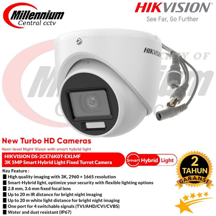 CAMERA CCTV INDOOR HIKVISION 5MP DS-2CE76K0T-EXLPF 3K Smart Dual Light