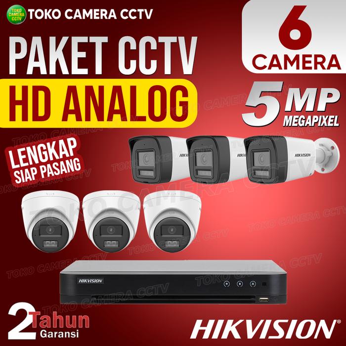 PAKET CCTV ANALOG HIKVISION 5MP 8 CHANNEL 6 KAMERA