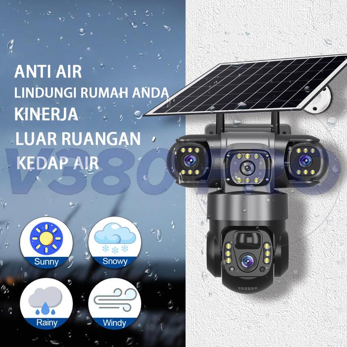 V380 Pro CCTV Tenaga Surya Lensa Tiga 4G SIM 20000mAh Konsumsi Daya Rendah Alarm Cerdas 10x Zoom