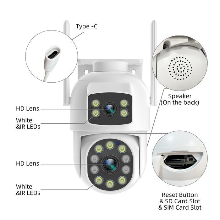 V380 BP3-4G Outdoor Tahan Air CCTV Pakai Simcard Kamera Pengawas HD 1080P PTZ Camera Pantau Jarak