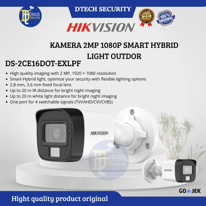 Hikvision DS-2CE16D0T-EXLF Kamera CCTV 2MP Smart Hybrid Light Outdoor 1920x1080 Resolution IP67
