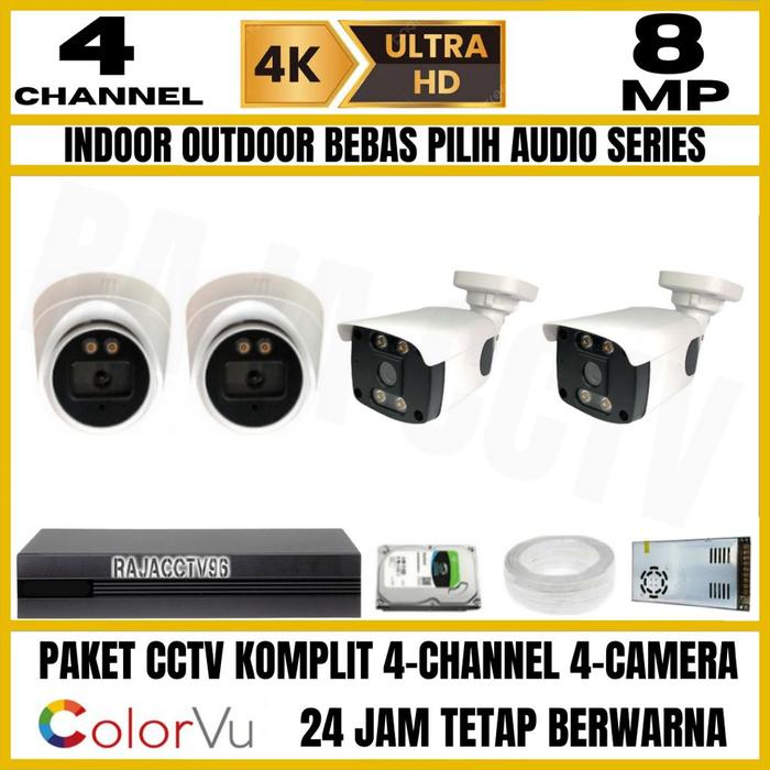 PAKET CCTV 8MP COLORVU COLORFUL 4 CHANNEL 4 KAMERA ULTRA HD 4K CAMERA AUDIO SERIES FULLCOLOR