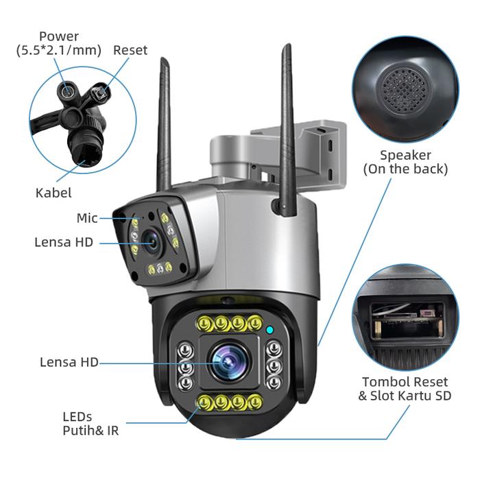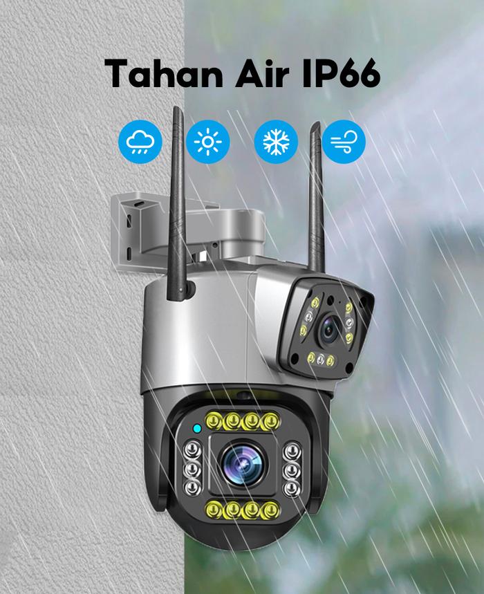 V380 V10 Kamera CCTV Kamera Ganda HD 4K Wifi CCTV Luar Ruangan IP66 Tahan Air Zoom Digital Keamanan