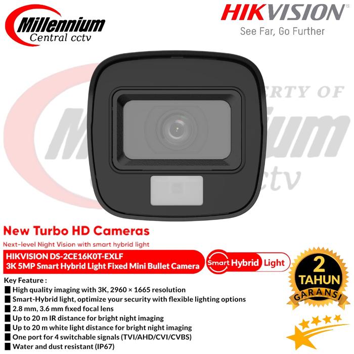 DS-2CE16K0T-EXLF - CCTV HIKVISION 3K 5MP SMART DUAL LIGHT FULL METAL