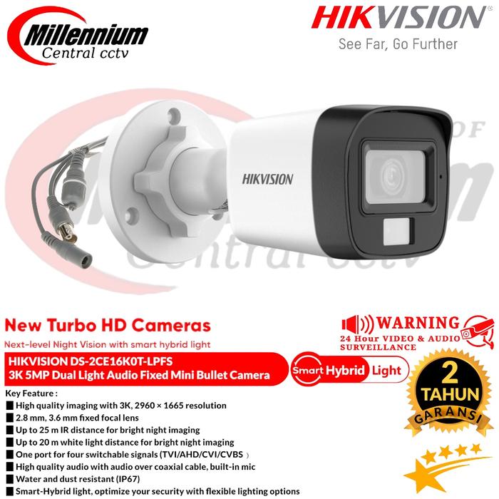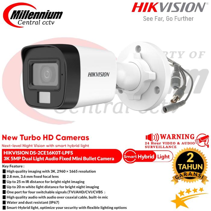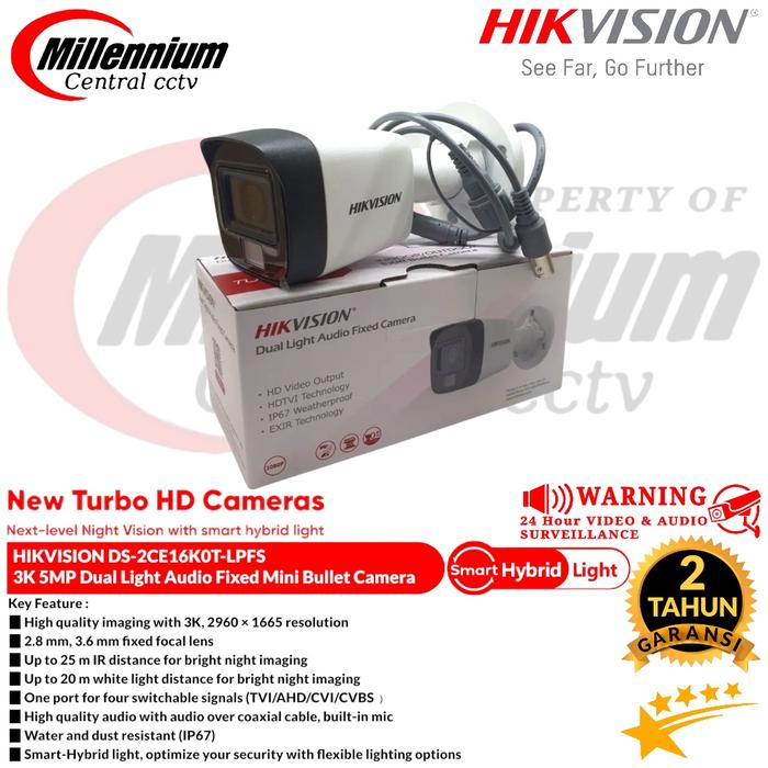 CAMERA CCTV OUTDOOR HIKVISION 5MP DS-2CE16K0T-LPFS 3K Dual-Light Audio