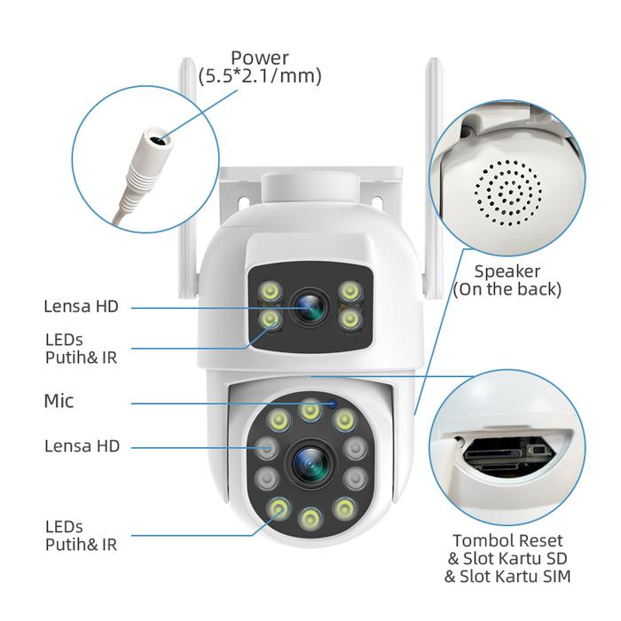 V380 G5A-4G CCTV Outdoor Camera HD Multi Penglihatan Malam Lensa Ganda Kamera keamanan Pelayaran PTZ