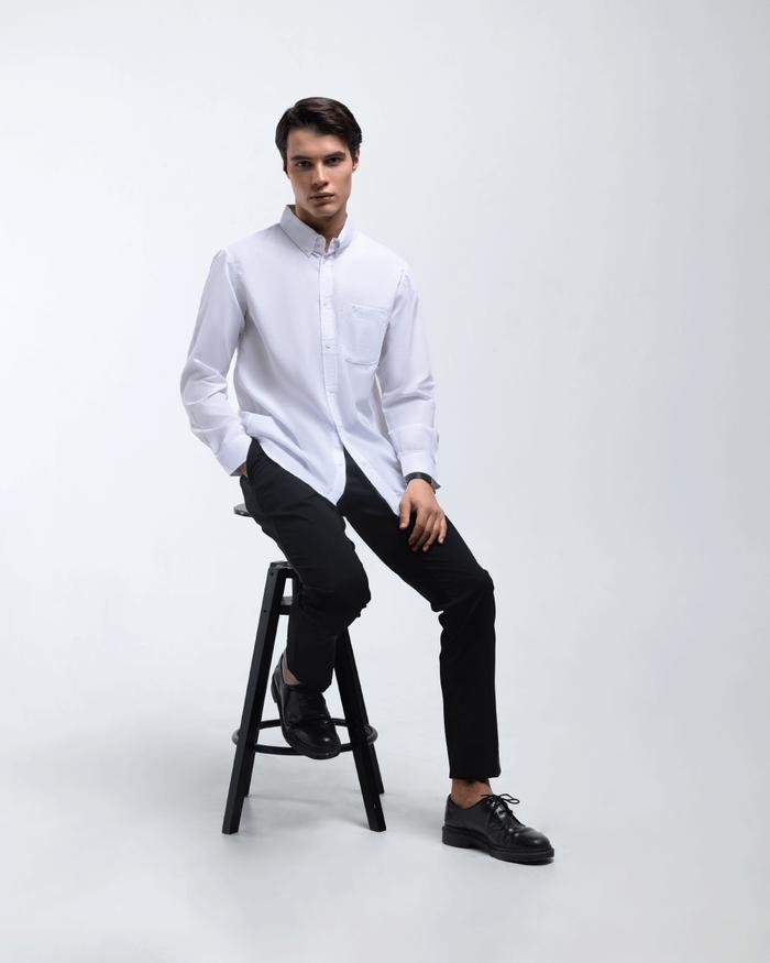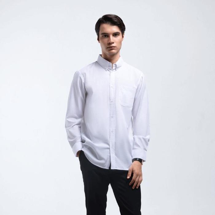 Broodis Kemeja Basic Formal Pria RADIANT Broken White Polos Cotton Oxford Slimfit Lengan Panjang