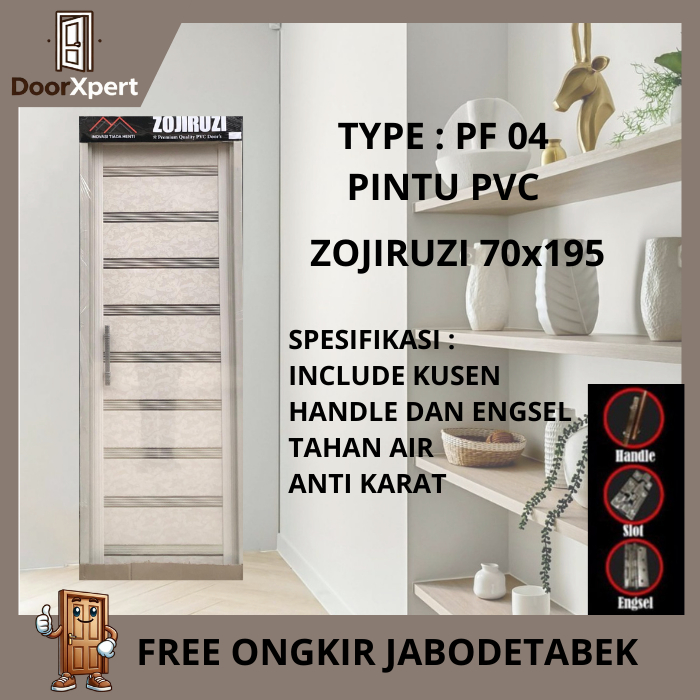 Pintu Kamar Mandi | Pintu PVC ZOJIRUZI Motif Garis Gagang - 70X195