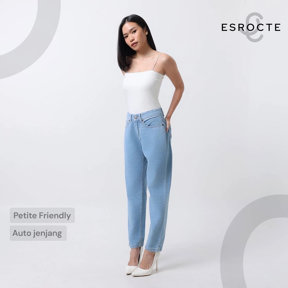 ESROCTE Aurea Pants | Celana Boyfirend Mom Jeans Wanita High-Waist –Biru Folder– 26–38