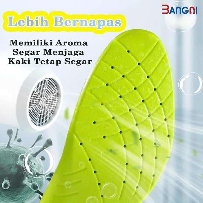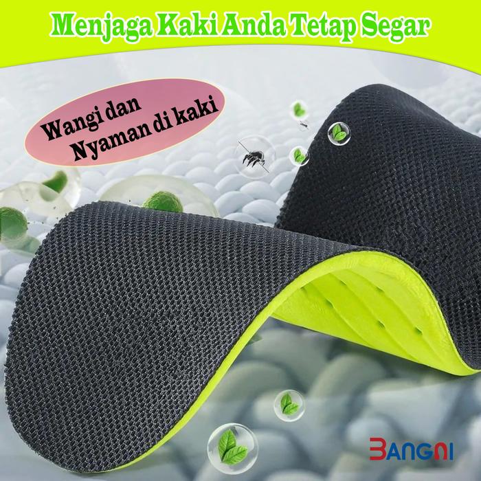 BANGNI INSOLE SEPATU ANTIBAKTERI & ANTI BAU SOL BERNAPAS UNTUK PRIA WANITA SOL SEPATU SOL-007 HIJAU DEPAN HITAM BAWAH KAIN MUTIARA MATTE PU SIZE 35-46 - 35
