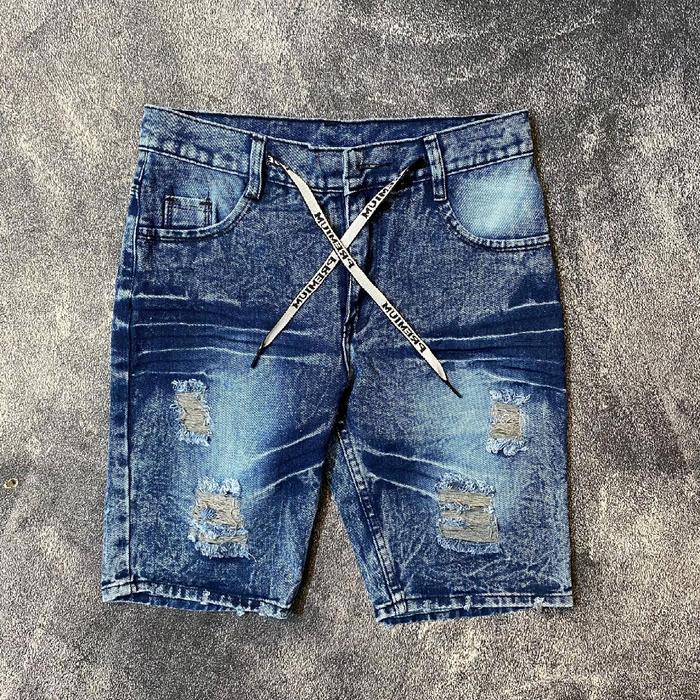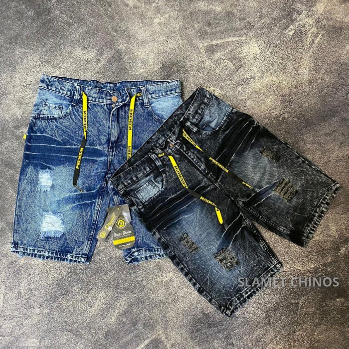 Paket 100Rb Dapat 2Psc Celana Pendek Jeans Sobek Pria Distro Tagling Premium Berkualitas Shorts - Snow Hitam + Snow B