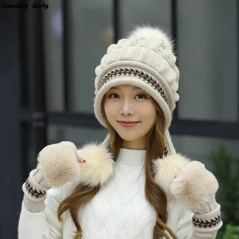 Topi Kupluk Sarung Tangan Syal Musim Dingin Winter Wanita T-B01