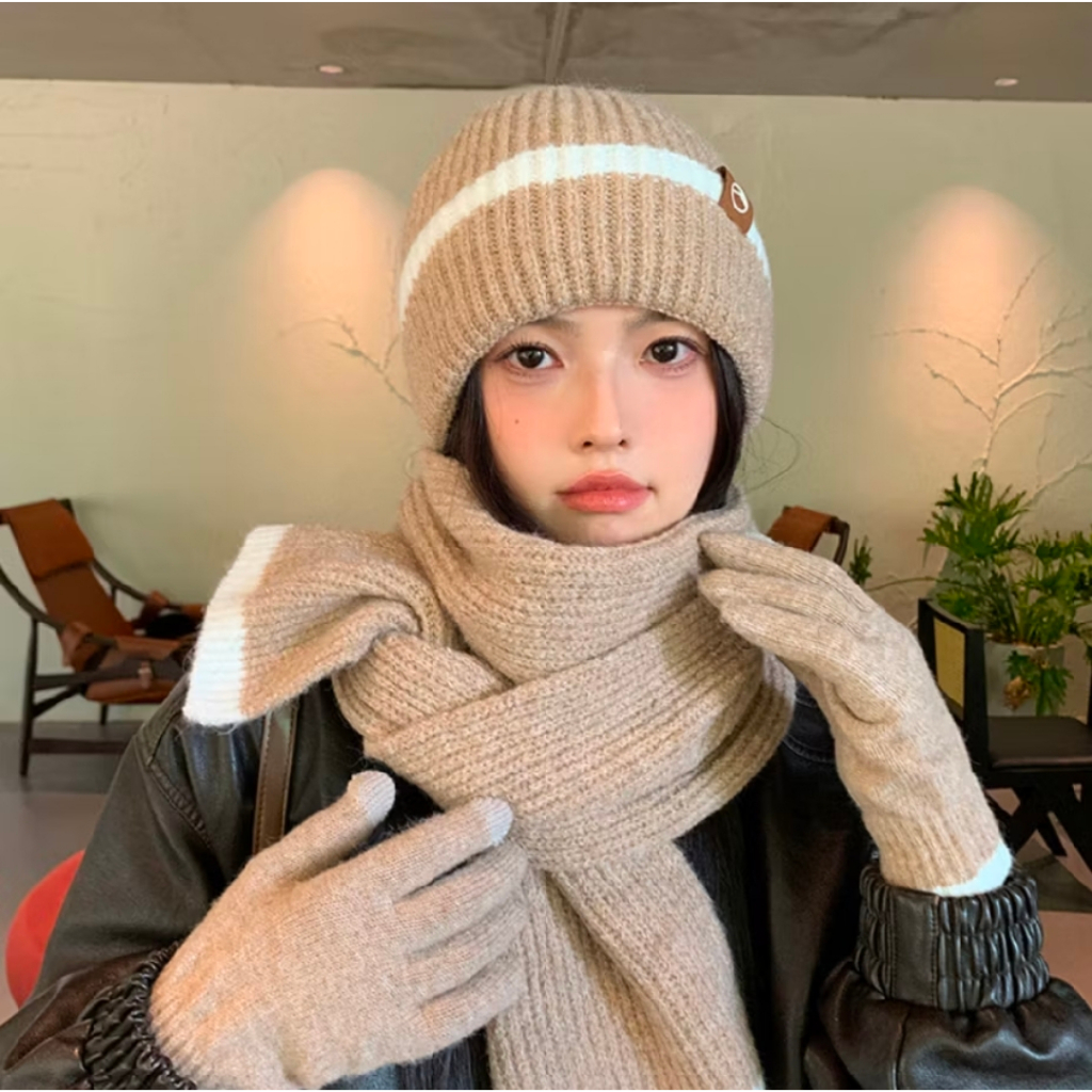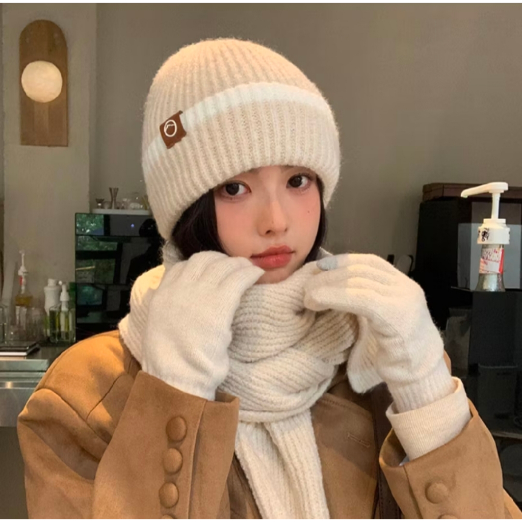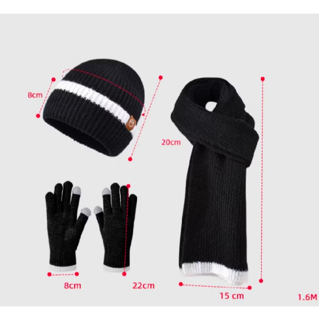 Topi Kupluk Set 3Pcs Unisex Rajut Poliester